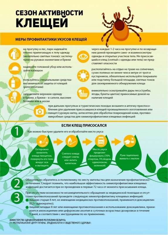 • Обрабатывайте одежду и кожу средствами, которые отпугивают клещей (строго по инструкции).