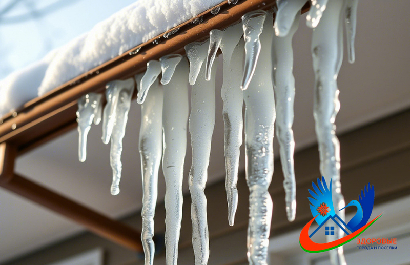 Сильный снегопад и колебание температур привели к образованию на крышах зданий большого количеств снега и сосулек.