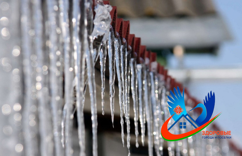 Моцны снегапад і ваганне тэмператур прывялі да ўтварэння на дахах будынкаў вялікай колькасці снегу і ледзяшоў.